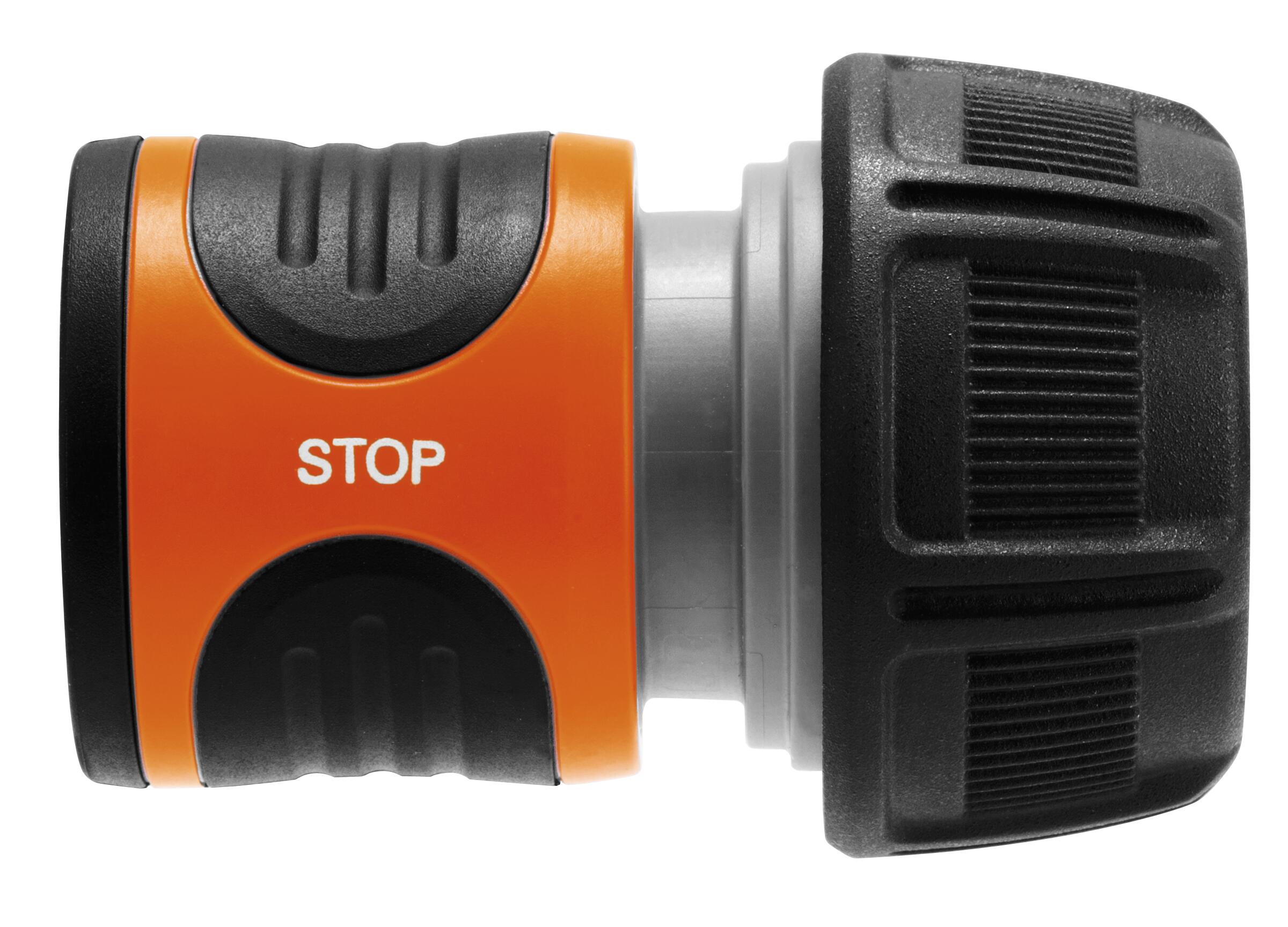 GARDENA veesulguriga voolikuliitmik ühendatakse vooliku lõpuotsaga. Kui ühendatud seade, nt pihusti või vihmuti vooliku küljest eemaldatakse, sulgeb see vee automaatselt; seadme ühendamisel voolab vesi taas vabalt. See säästab tarvikute vahetamisel aega peakraani juurde kõndimise arvelt. Veesulguriga voolikuliitmik sobib 19 mm (3/4″) voolikutega.