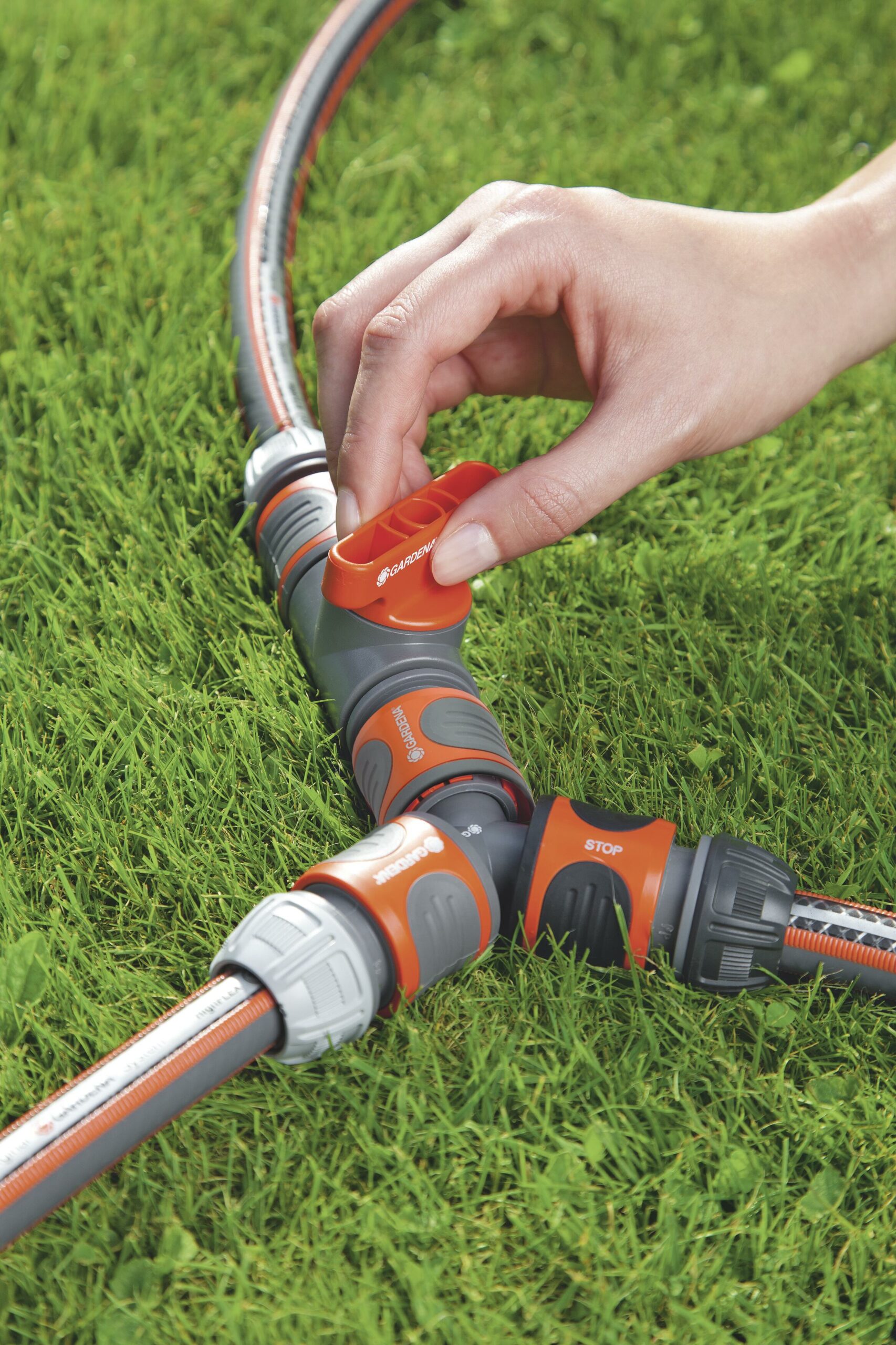 Kui aiavoolikud on ühendatud GARDENA jaotuskolmikuga, sobib kasutada GARDENA kraanliitmikku. Veevoolu saab voolikutes sõltumatult reguleerida.